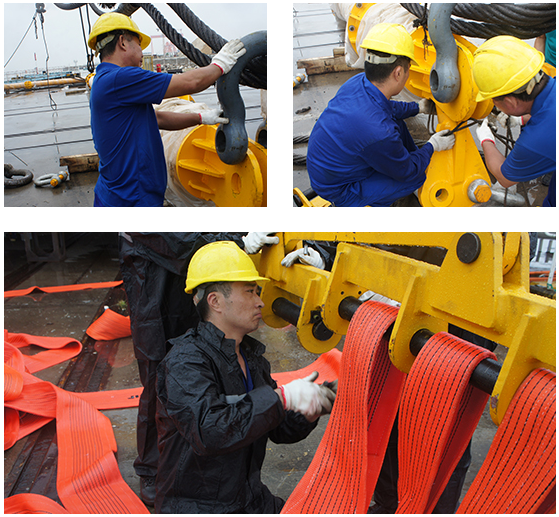 Xin Hai Weiのリフティングスキームは、新しい船をひっくり返すのを避けるためにカスタマイズされた高トーン繊維のスリングを使用して設計されており、力は慎重に計算され、スキームは繰り返し、その滑らかな伝導を確保するためにAOLNGとJianfeng技術チームによって検討されました。