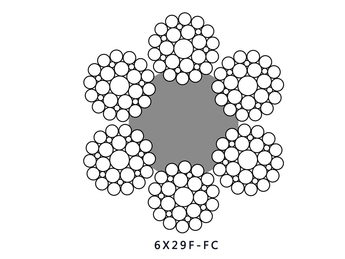 これに対して、ワイヤコンタクトワイヤロープは、これらの曲がり及び内部摩擦を低減し、破断したワイヤを防止し、素線のモノフィラメント間の接触状態を改善するために、シール(S)、フィラー(FI)、ウォリントン(W)などを有する。また,モノフィラメントを細径化し,さらにトータルにするためには,ワイヤロープの柔らかさを増し,シール材(sfi),warringtonシール(ws)あるいは点接触形状に半シール(ses),セミフィラー(sefi)などと組み合わせる。
