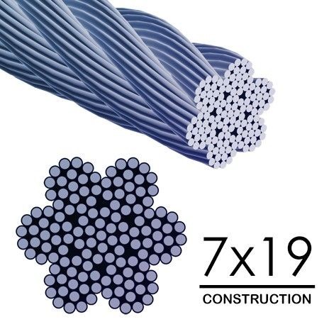 7x19によって電流を通される航空機ケーブルは強さおよび高い柔軟性が必要なとき好まれます。構造は腐食に対して適用範囲が広く、抵抗力がある強い鋼鉄ケーブルを作成する電流を通された鋼鉄に繊維ごとの19本のワイヤーが付いている7つの繊維を含めます。この小さい直径ワイヤー ロープは航空機の使用のために意図されていませんが、産業の、農業および海洋の適用のために設計されています。