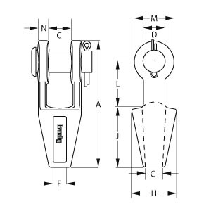 バスケットは鋳造物鋼鉄です。くさびのソケットの終了にワイヤー ロープのカタログの強さに基づいて80%の勤務評定があります。くさびは容易な同一証明のために色分けされています。大会はまたはASME B30.26のすべての条件を超過します
