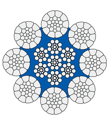 このワイヤー ロープは回転抵抗力がある分類で非属しますが、繊維は密集し、高性能の船及び港のクレーン車の容器橋クレーン、頭上に移動の起重機、ミネラル ローディング クレーンの水平寄せワイヤー ロープとして主に使用されます。