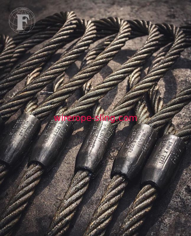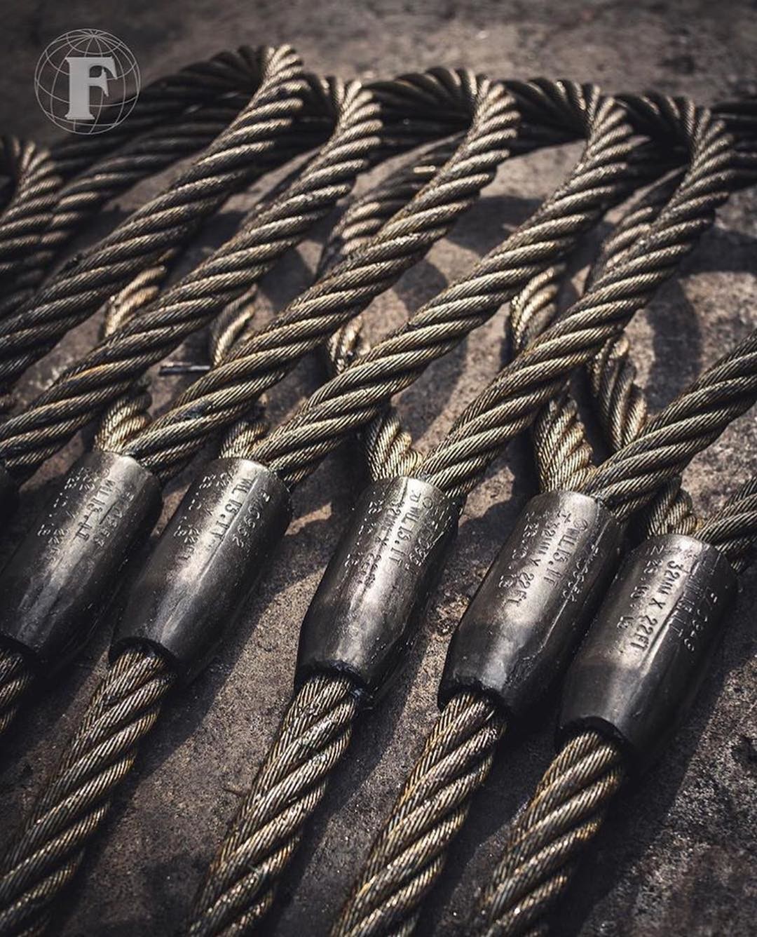 ワイヤー ロープの吊り鎖は耐久財としてかなりありません。ワイヤー ロープの吊り鎖は鎖程に適用範囲が広くないですしかし小さい開始によってまたは負荷の下で挿入されなければならなければより大きい剛さは利点である場合もあります。但し、負荷のまわりで包まれたとき、ワイヤー ロープの吊り鎖は頻繁に負荷の形に永久に変形しがちです。吊り鎖のために適したワイヤー ロープはいろいろな等級および構造入って来ます。ほとんどの場合金属の袖が付いているループをループバックし、しっかり止めることはロープを終えます。これはループか柔らかい目の簡単な形式の吊り鎖の端を形作ります。指ぬきが摩耗から目を支え、保護するのに使用されています。ワイヤー ロープは一般にaがある場合もある長い吊り鎖の長さを要求する適用のための鎖より軽いです安く、特に。