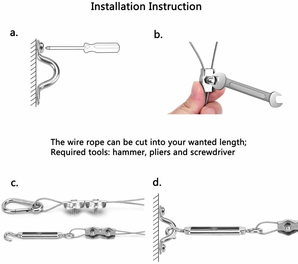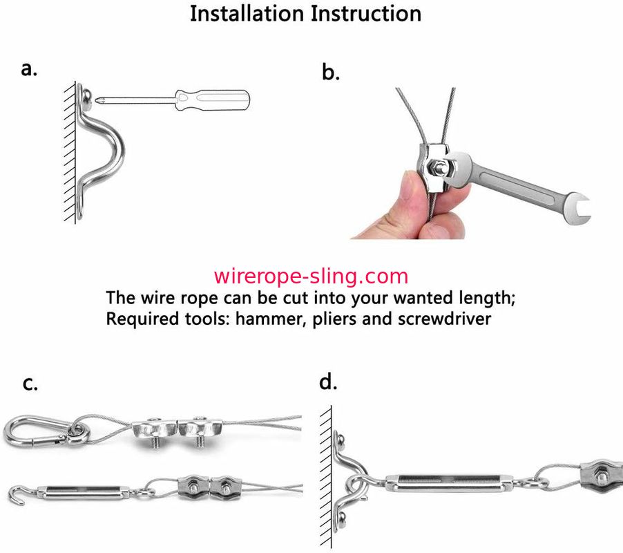 1.Insertはワイヤー ロープの堅さに従って最高に2つの単一クランプによって急なホックへのワイヤー ロープ、鋼線を固定し、ねじをきつく締めるのに小さいレンチをゆるめます急なホックを、調節します急なホックを使用します