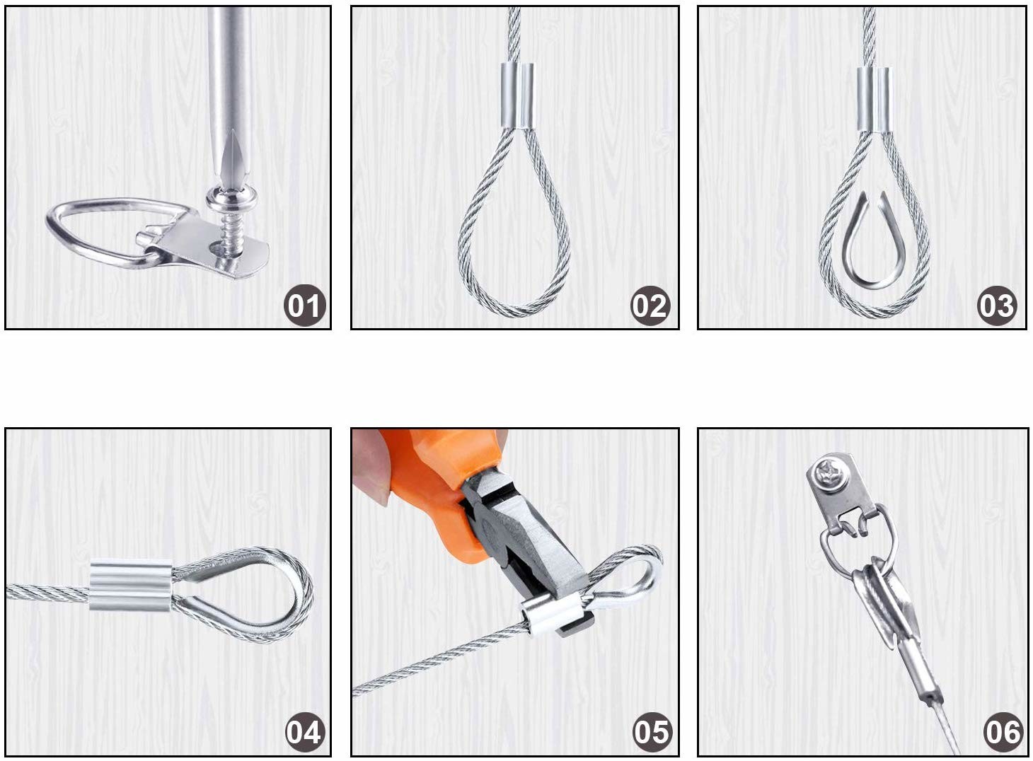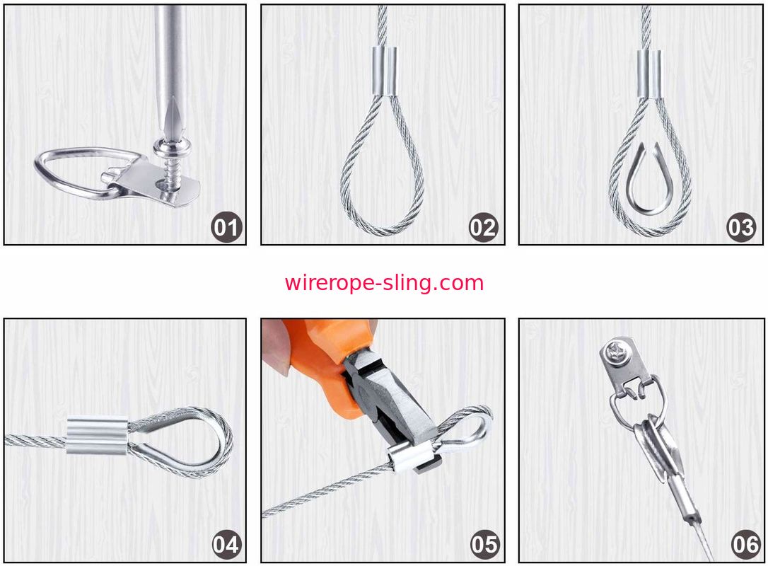 描いて下さいねじ、映像掛かるワイヤー ロープ、ステンレス鋼の指ぬき、アルミニウムひだが付くループ袖、サポートが付いている掛かるキットのDリングの壁掛け用の金具を33までのlbs (100フィート)