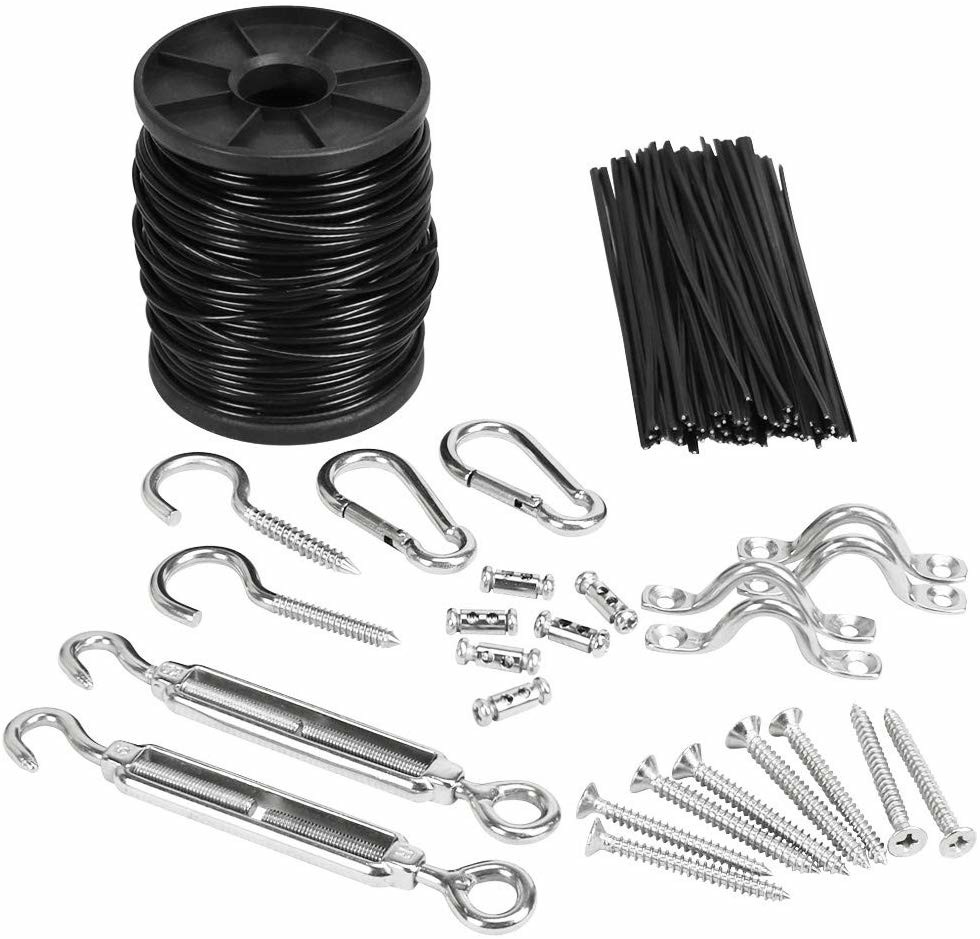 キット、地球のひもを掛けるLKSの屋外ライトは懸濁液のキット、82ftの黒いビニール上塗を施してある304ステンレス鋼ケーブルを、ひもでつなぎます軽いガイド ワイヤー、ホックとのターンバックル ワイヤー ロープの張力をつけます