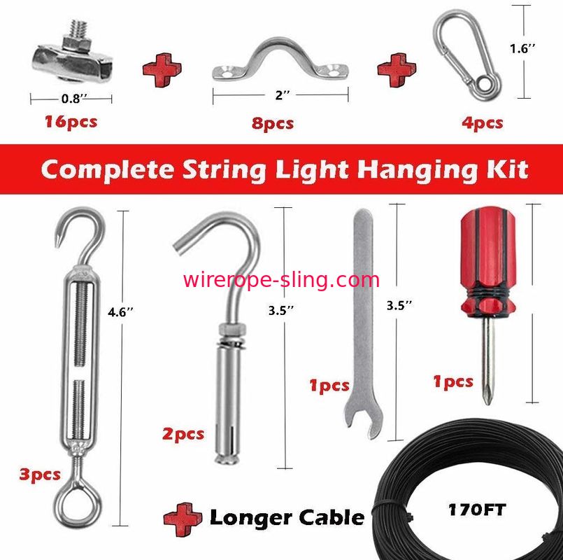 170Ftワイヤー ロープ ケーブルのターンバックルが付いているLKSの地球のひもライト懸濁液のキットのひもの軽い掛かるキットおよび屋内および屋外のひもライト懸濁液、写真の壁、塀、Clotheslineのためのホック。