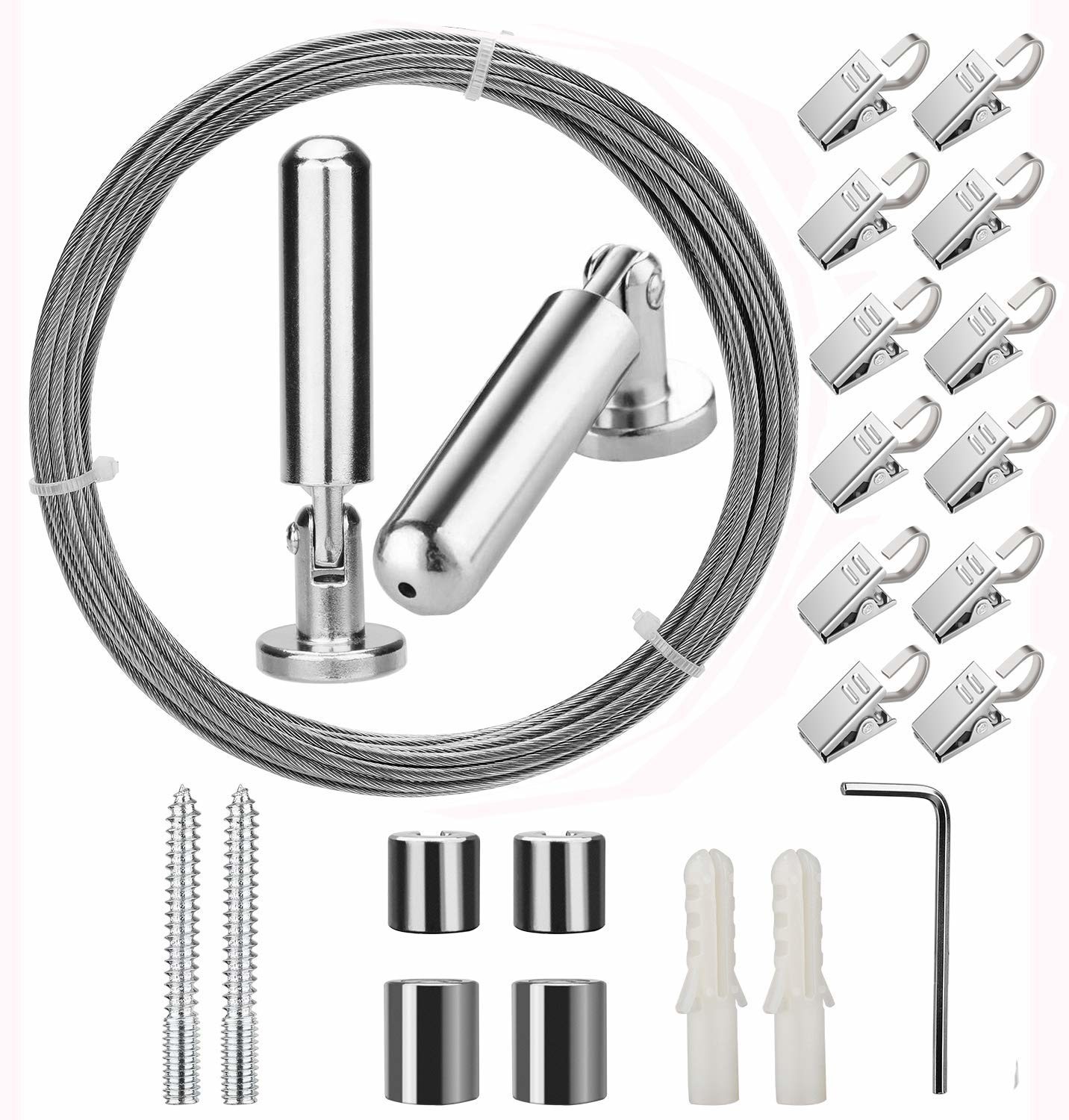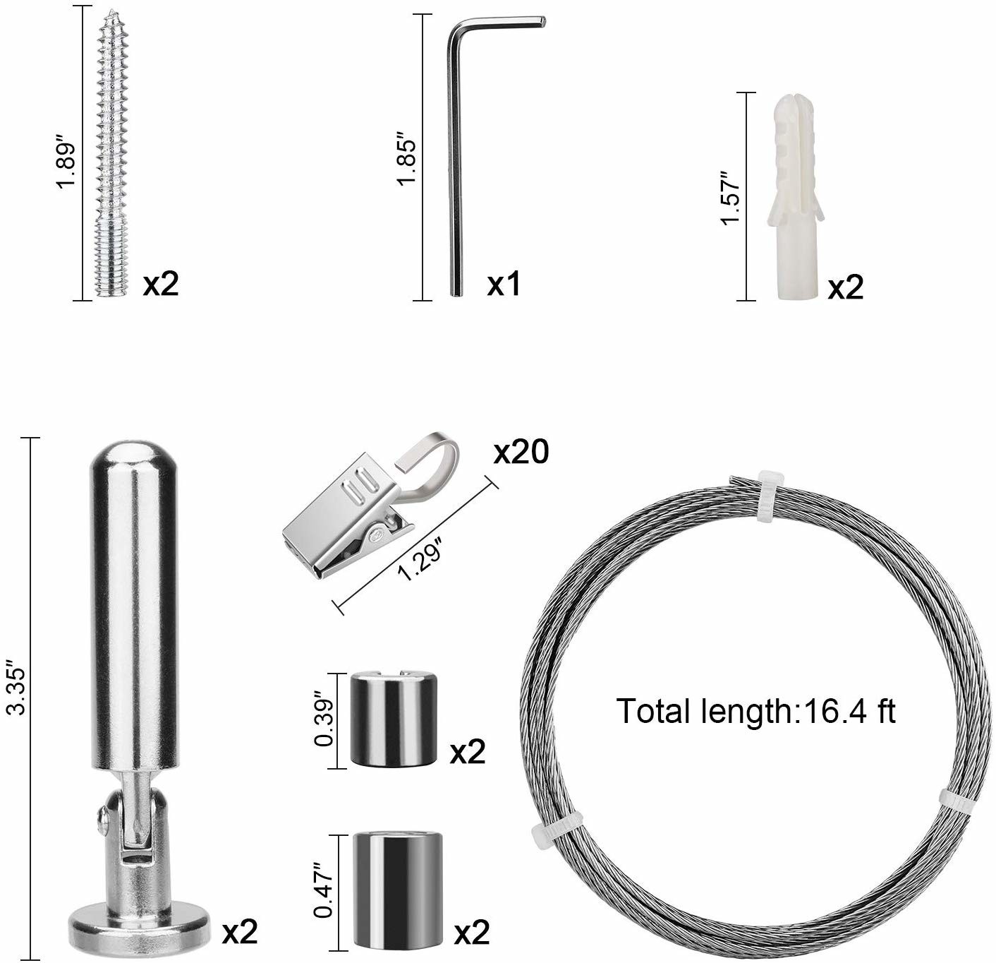 20のクリップ-ステンレス鋼の写真掛かるワイヤーClotheslineワイヤー窓カーテンの張力ワイヤー多目的技術のオルガナイザーによって(5メートル)置かれるLKSの壁の台紙の芸術のプロジェクトの表示カーテン ワイヤー棒
