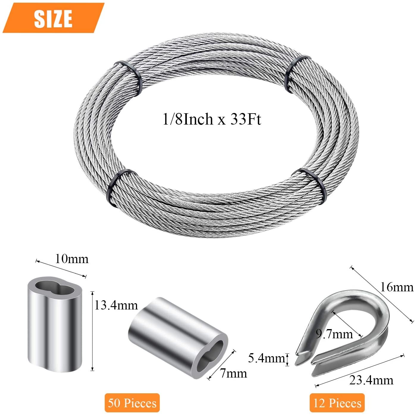 • キットを1/8インチX柵で囲む【ケーブルは小さいプラスチック収納箱に】をケーブル33フィート304ステンレス鋼ワイヤー ロープ、50部分アルミニウムひだが付く袖および指ぬき12部分のステンレス鋼ワイヤー ロープの含めます。