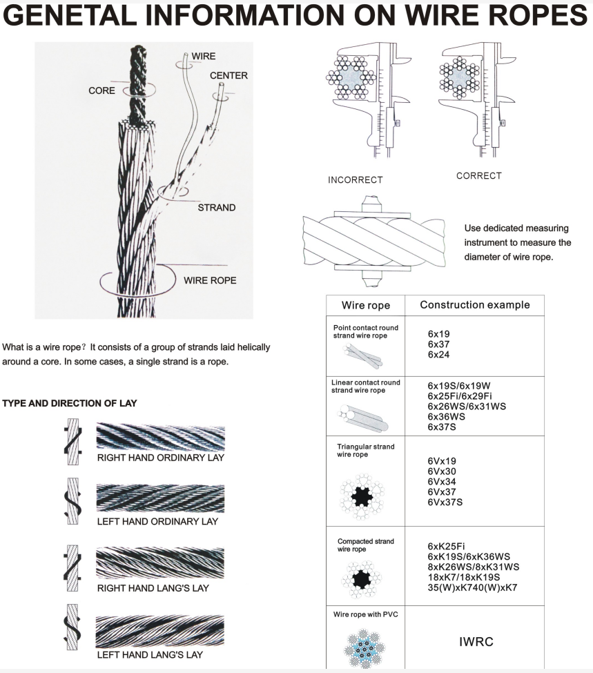 ワイヤーロープの異なる構造から選択する方法については、GB 8919 - 2006「重要な目的のための鋼線ロープ」とGB / T 20018 - 2006「一般的な目的のための鋼線ロープ」を参照してください。また、ワイヤロープを選択する当社の製品カタログのこのセクションを参照してください、我々は等しいレイ鋼線ロープを選択することをお勧めします。締固め用ロープロープ.ワイヤロープの強度クラスを選択する際,揚力,安全係数,揚力能力などの技術パラメータを考慮すべきである。高い強さと高い破壊力ワイヤーロープを盲目に選択しないでください、これは結果を危うくするかもしれません。